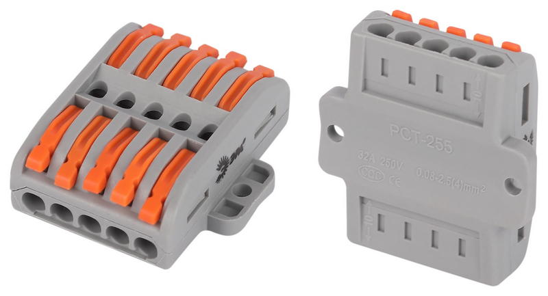 - конструкция механизма с рычажками обеспечивает многоразовый монтаж и демонтаж всех типов медных проводников сечением до 4.0 мм2: одножильных, многожильных и тонкопроволочных.