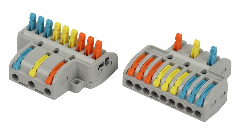 - конструкция механизма с рычажками обеспечивает многоразовый монтаж и демонтаж всех типов медных проводников сечением до 4.0 мм2: одножильных, многожильных и тонкопроволочных.