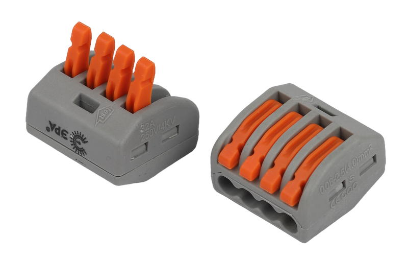 - конструкция механизма с рычажками обеспечивает многоразовый монтаж и демонтаж всех типов медных проводников: одножильных, многожильных и тонкопроволочных.