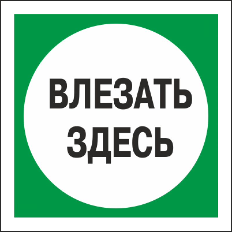 Плакат пластиковый "ВЛЕЗАТЬ ЗДЕСЬ" (250х250)мм, зеленый - для РБ